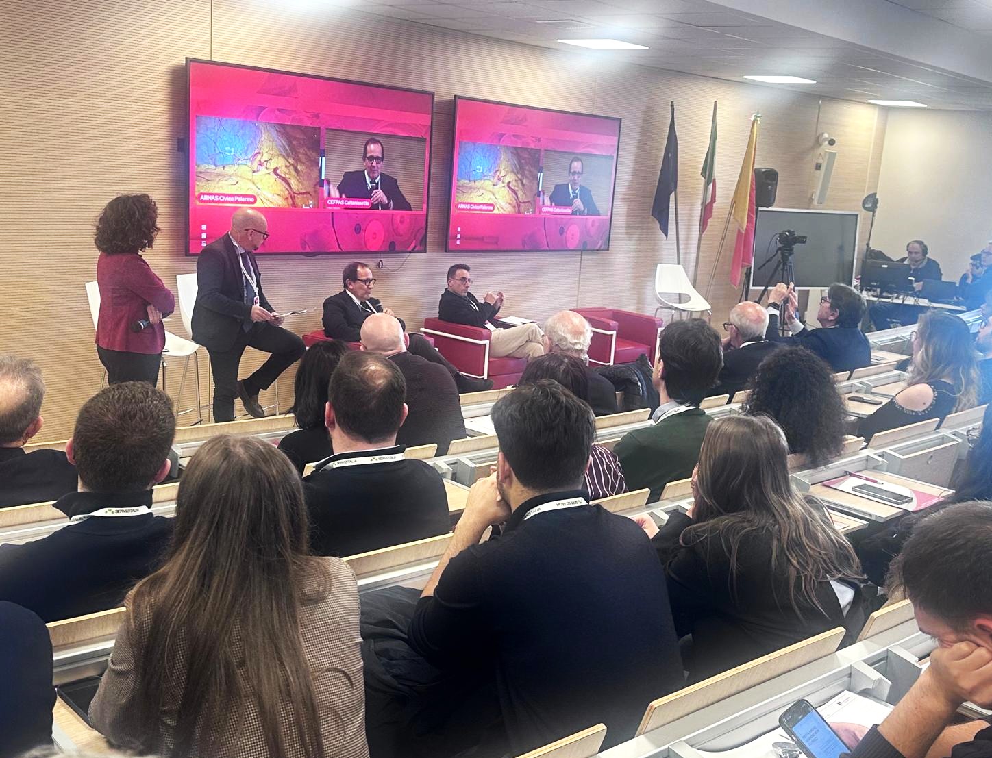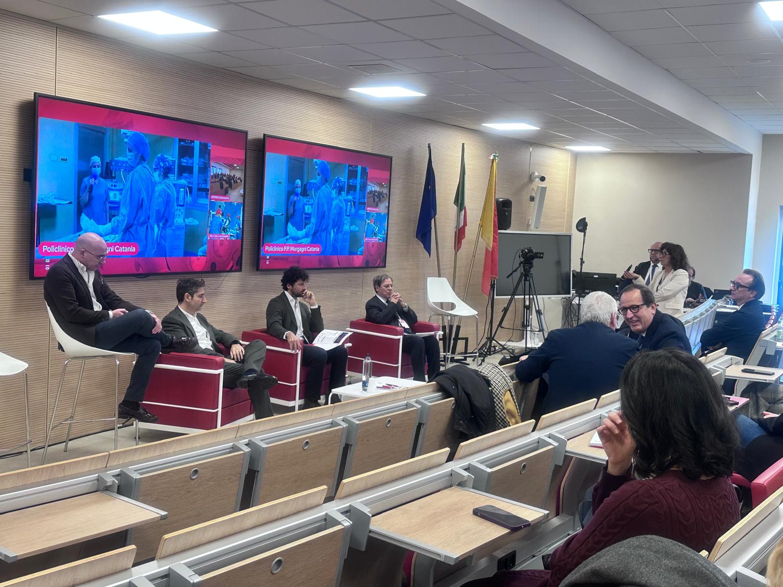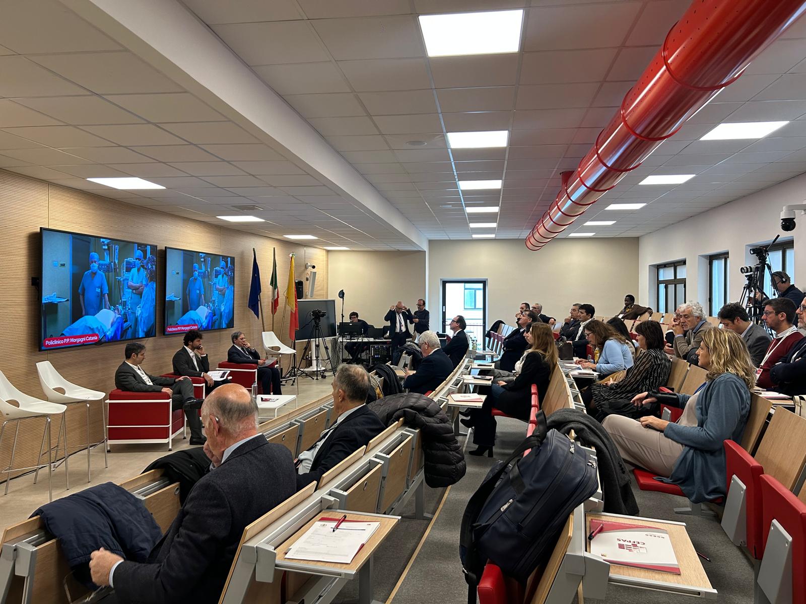 Durante la mattinata della prima giornata di lavori si è svolta un’attività formativa di simulazione rivolta ai chirurghi in formazione con Giovanni Ciaccio, responsabile scientifico della Scuola di Laparoscopia del CEFPAS. L’evento “Sicilia Live Surgery: tra esperienza e ambizione” si è focalizzato, in particolar modo, sulla chirurgia colorettale ed esofagogastrica e sulla presentazione dei centri live surgery con collegamenti dalle sale operatorie: il 18 dicembre con l’Azienda Ospedaliera Universitaria Gaetano Martino di Messina presentando un intervento di emicolectomia destra laparoscopica e con l’Arnas Civico di Palermo con un intervento di resezione anteriore del retto. Il 19 dicembre ci si è collegati con il Policlinico Morgagni di Catania in cui si è potuto vedere un intervento di riparazione laparoscopica di ernia inguinale e con il Presidio Ospedaliero “S.Elia” di Caltanissetta con un intervento di fundoplicatio secondo Nissen ossia la tecnica chirurgica più comune ed efficace per la cura della malattia da reflusso gastroesofageo (MRGE).