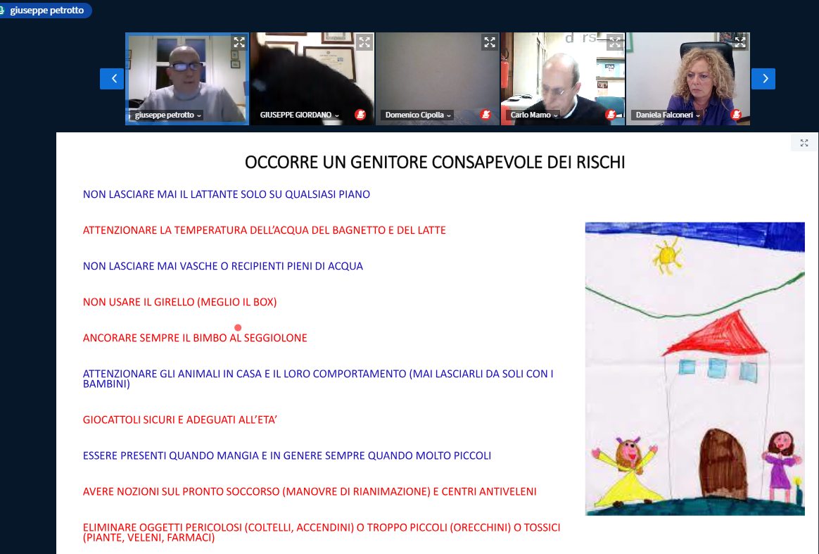 “Gli incidenti domestici – Il Pediatra di Famiglia e le cose da fare” è il titolo dell’intervento di Giuseppe Petrotto, Pediatri Centro Sicilia, che ha evidenziato come gli incidenti domestici rappresentino nei paesi industrializzati la principale causa di morte nei bambini tra 1 e 5 anni. Petrotto ha dato alcuni suggerimenti ai genitori per evitare incidenti domestici tra i quali non lasciare mai il lattante da solo, attenzionare la temperatura dell’acqua del bagnetto e del latte, non lasciare mai vasche o recipienti pieni di acqua, dare ai bambini giocattoli sicuri e adeguati all’età, essere sempre presenti quando questi mangiano soprattutto se sono molto piccoli e avere nozioni di pronto soccorso come le manovre di rianimazione. Floriana Di Marco, Dirigente Medico Pediatra ASP Palermo Direzione DS 42 Coordinatrice Educazione e Promozione della Salute, ha presentato l’esperienza dell’ASP di Palermo nell’ambito della prevenzione degli incidenti domestici in età pediatrica in ambito scolastico. Il progetto è stato realizzato al fine di agire sui comportamenti e sulla consapevolezza del rischio di incidentalità durante la pandemia in risposta anche all’incremento degli incidenti domestici registrati nei bambini come effetto dell’isolamento e dello stress. Di Marco ha presentato il progetto “Affy Fiutapericoli” che è stato utilizzato da tutte le UOEPSA (‘U.O. per l’Educazione e la Promozione alla Salute Aziendale) di tutte le province siciliane per lavorare sul tema della prevenzione degli incidenti domestici direttamente con i bambini della scuola dell’infanzia. Il progetto, destinato ai bambini della scuola dell’infanzia, mira a sviluppare nei piccoli competenze nella gestione di oggetti e situazioni potenzialmente pericolosi in casa e nelle attività di gioco.