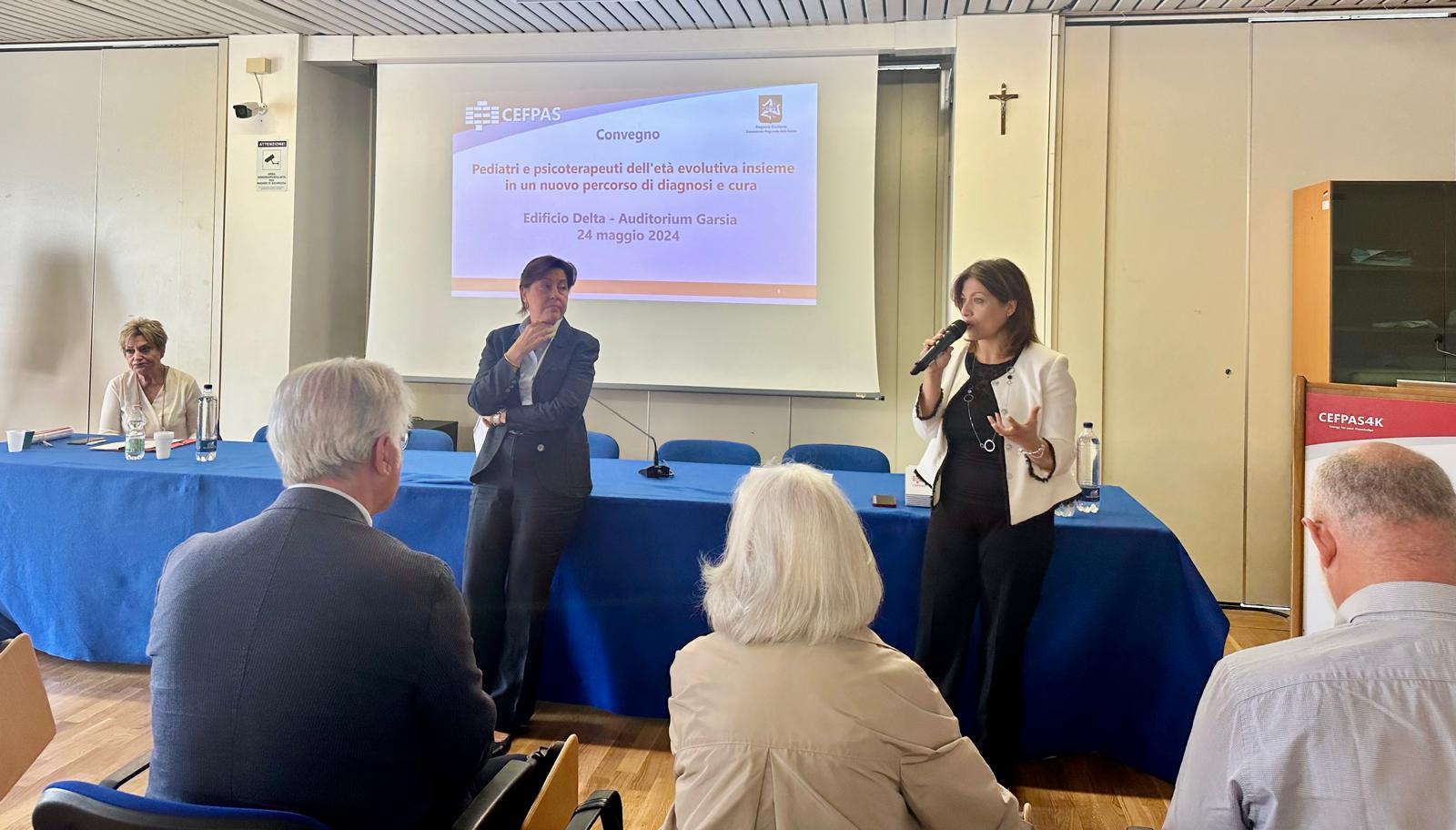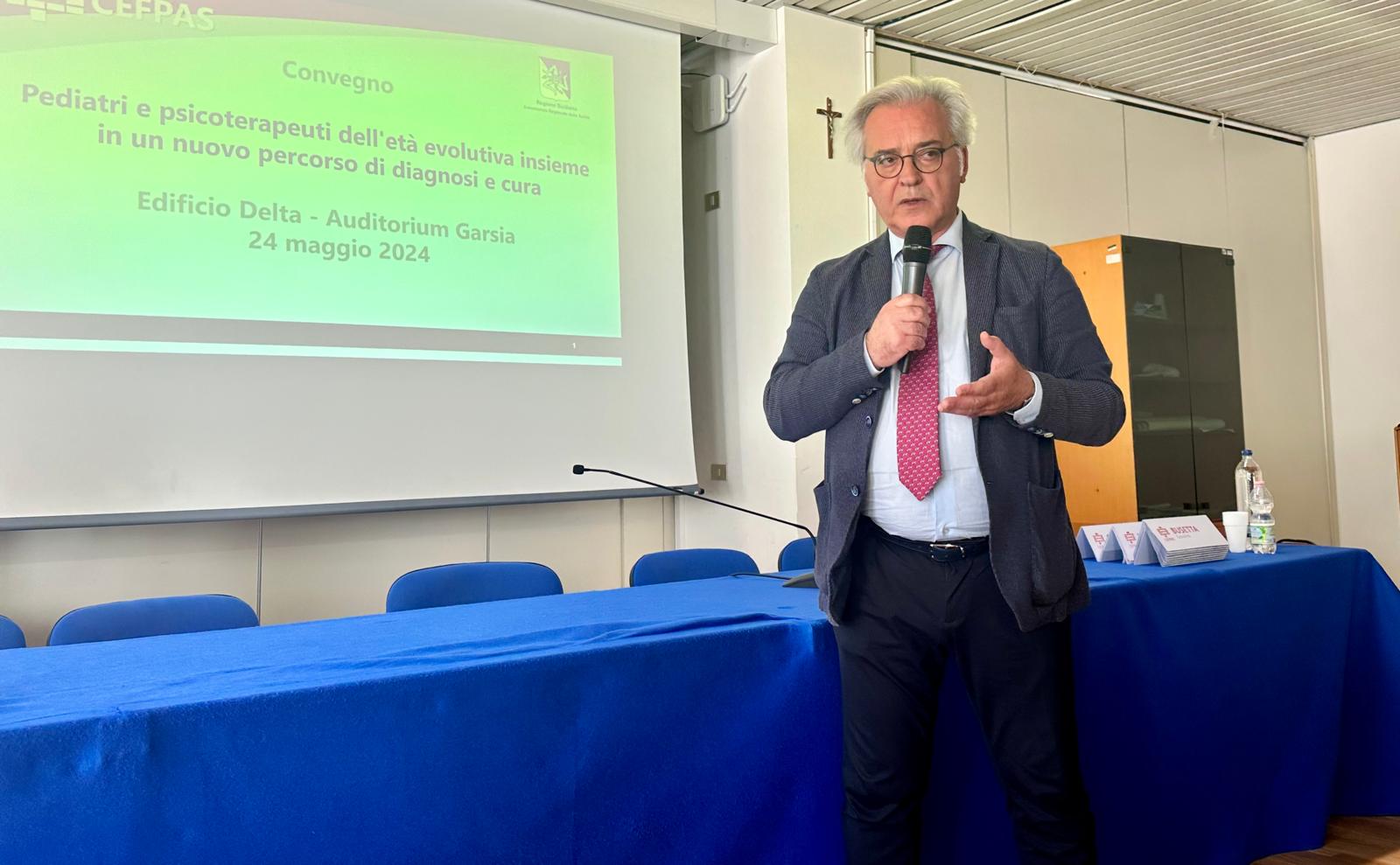 “Siamo orgogliosi di presentare al CEFPAS questo progetto, sperimentato nel reparto di Pediatria dell’Ospedale “Umberto I” di Enna, che ha come oggetto principale la collaborazione tra il pediatra e lo psicoterapeuta dell’età evolutiva e l’efficace condivisione del lavoro fra i diversi operatori coinvolti nello stesso caso clinico per giungere a una visione integrata del benessere del paziente” dichiara Roberto Sanfilippo, Direttore del Centro, in occasione del Convegno “Pediatri e psicoterapeuti dell’età evolutiva insieme in un nuovo percorso di diagnosi e cura” che si è tenuto il 24 maggio al CEFPAS. Presenti all’incontro: l’Assessore regionale della Salute Giovanna Volo e Salvatore Requirez, Dirigente Generale del Dipartimento per le attività sanitarie e Osservatorio epidemiologico (DASOE).